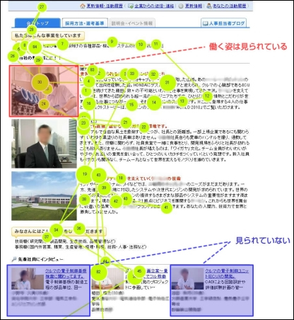 新卒サイトならではの画像に惹かれるケースもありました。図2は、学生C(男性)の視線の動きです。
