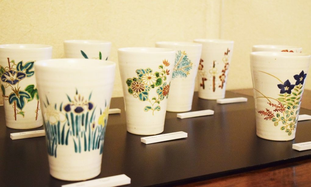12種類のタンブラーには、それぞれ1~12月の季節の花々が描かれています。ビールやワイン用に普段使いしていただきやすいタンブラーで、外国人観光客にも清水焼の風合いの魅力と日本の四季の感覚を身近に感じていただければと考えております。